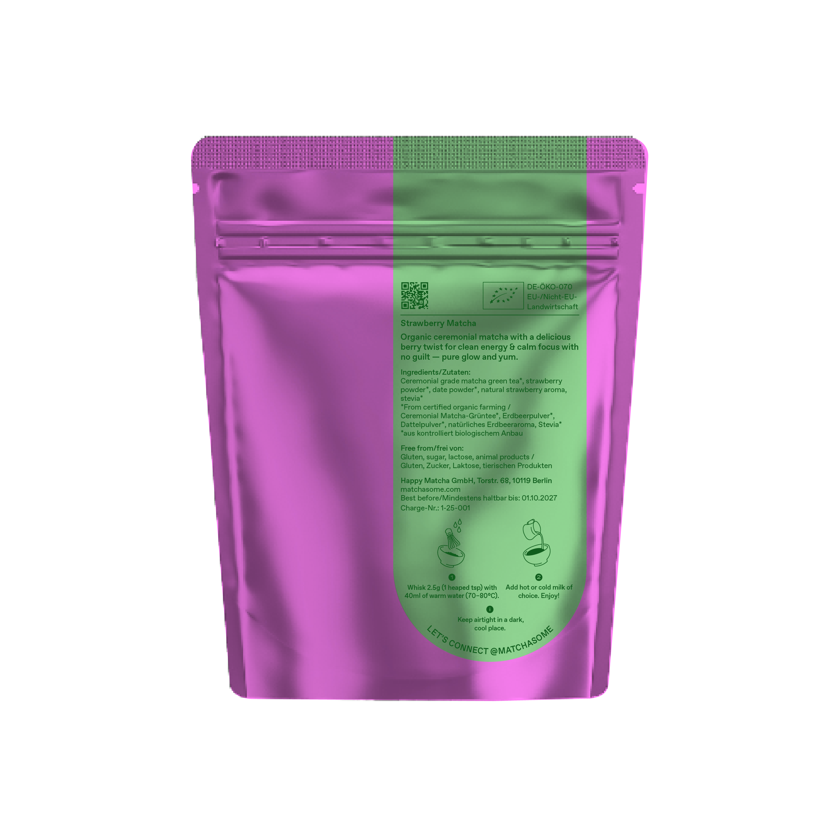 Der neuste Matcha in unserem Sortiment verbindet zwei unserer liebsten Geschmäcker: die Tiefe und Ruhe von hochwertigem japanischem Matcha – und den klaren, natürlichen Geschmack reifer Erdbeeren.
